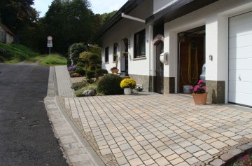Home » Bildergalerie » Bautechnik » Detaillösungen » Deutlich zu erkennen ist hier der Normgerechte Randabschluss der neu gestalteten Pflasterfläche. Material im Randbereich ist Porphyr Mosaik- Pflaster