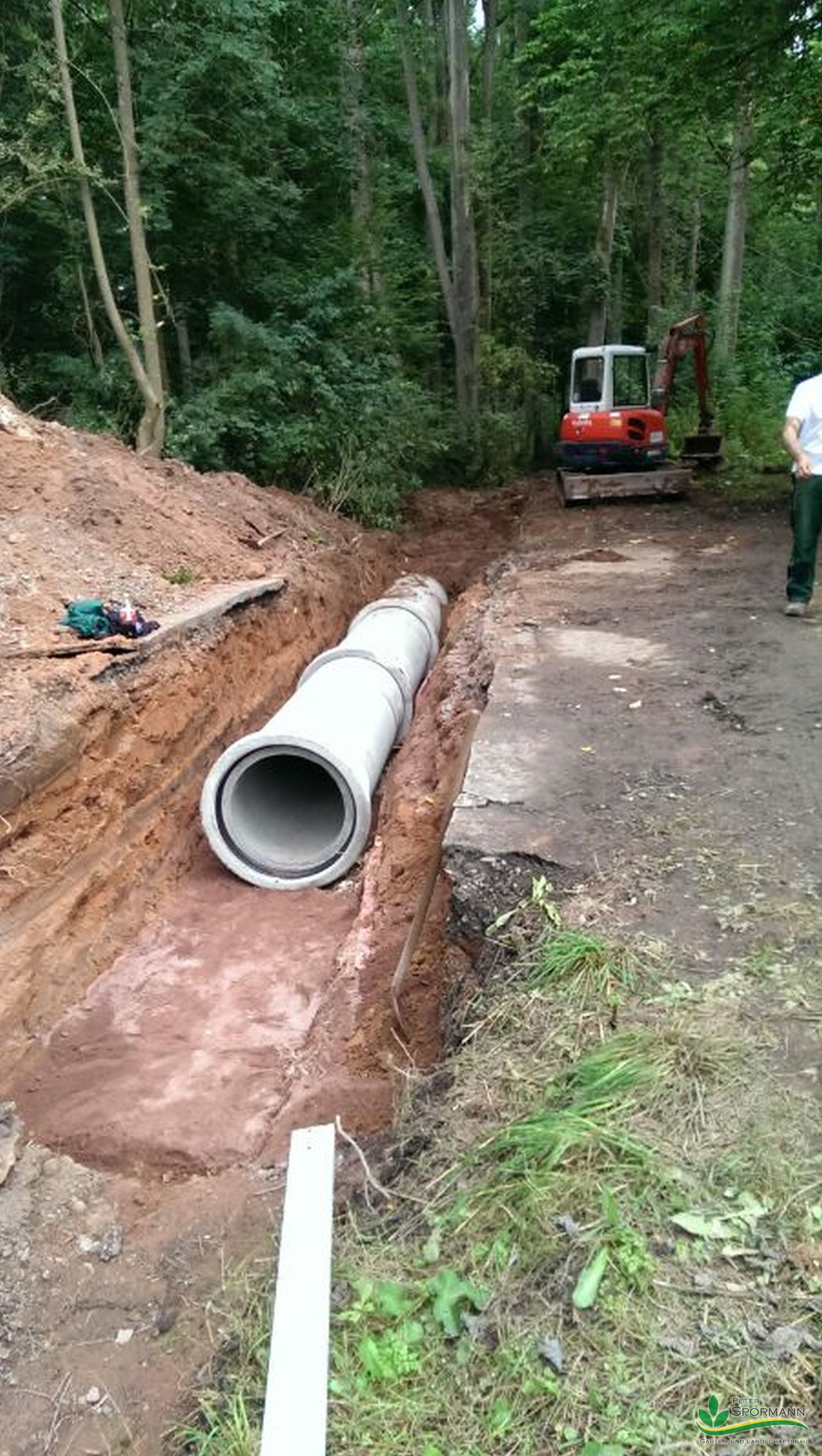 Wenn es nötig wird, verlegen wir auch Betonrohre passgenau. Hier DN 800 als Unterführung eines Feldweges