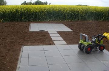 Sie befinden sich hier: Home » Bildergalerie » Bautechnik » Hof- und Platzflächen » Beton-Platten mit 60×60 cm in der Farbe terralit Luna mit RSF 5 Beschichtung