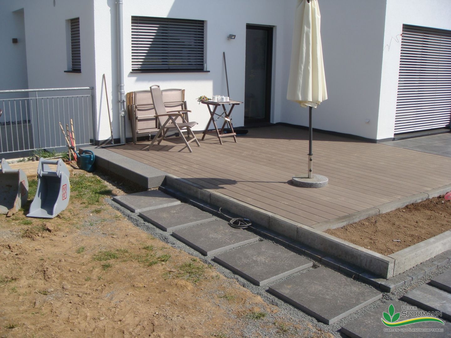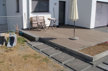 Home » Bildergalerie » Bautechnik » Holz im Garten » Nach der Montag des WPC-Belages auf der Unterkonstruktion kann die neue Terrasse sofort genutzt werden