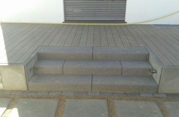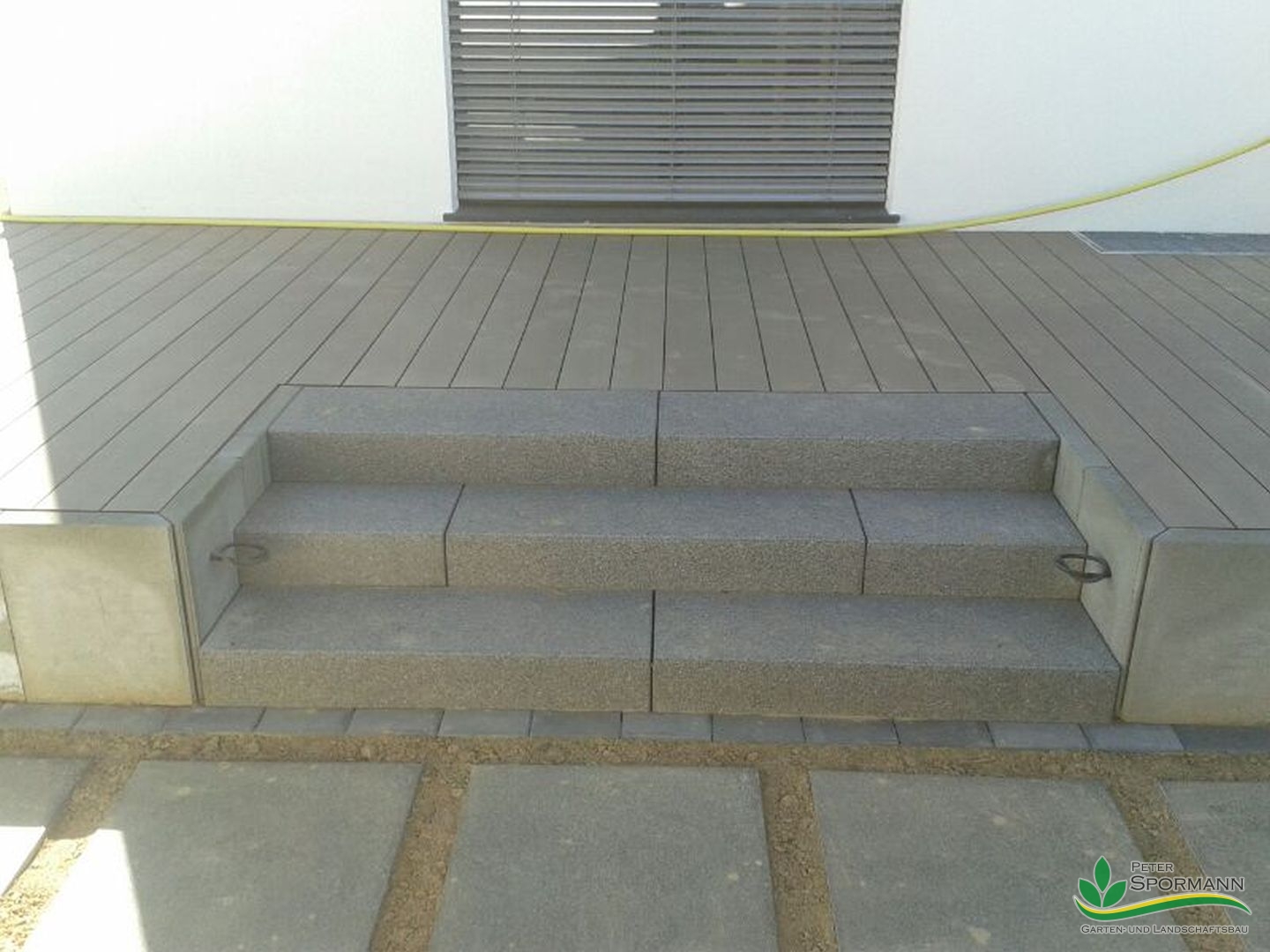 Home » Bildergalerie » Bautechnik » Holz im Garten » Holzdeck aus WPC, Stufen von Rinn in Basalt und eine exakte Verarbeitung sorgen für klare Linien