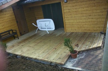 Sie befinden sich hier: Home » Bildergalerie » Bautechnik » Holz im Garten » Extra massives Holzdeck aus Eichenbohlen im Format von 120x40mm
