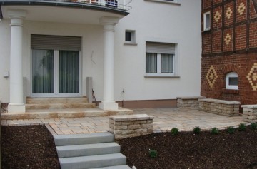 Home » Bildergalerie » Bautechnik » Mauern, Stützmauern und Randabschlüsse » Sitzmauern auf der Terrasse laden zum verweilen ein. Mauersystem Bayfield von Rinn