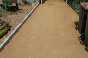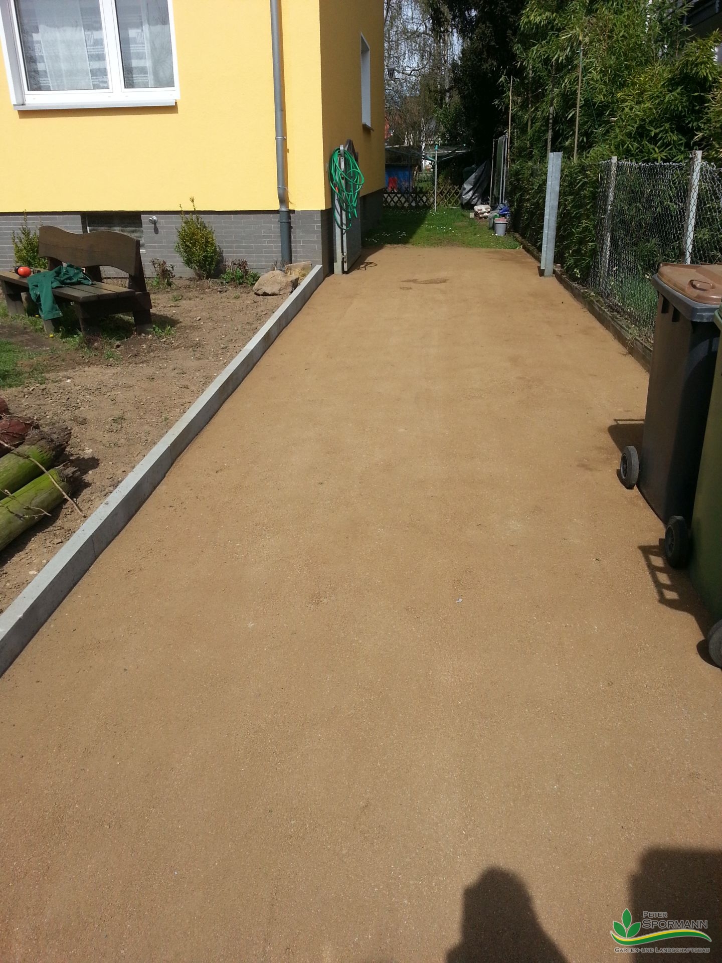 Home » Bildergalerie » Bautechnik » Naturstein und Naturbaustoffe im Gartenbau » Wassergebundene Wegedecke aus Römerkies 0-3 als ökologische und günstige Alternative zum Pflasterbelag