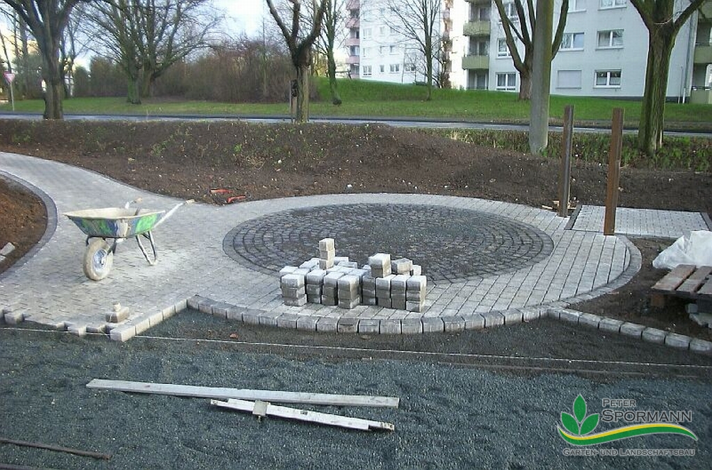 Sie befinden sich hier: Home » Bildergalerie » Bautechnik » Naturstein und Naturbaustoffe im Gartenbau » 14. Kreisfläche aus Basalt eingerahmt von Betonstein