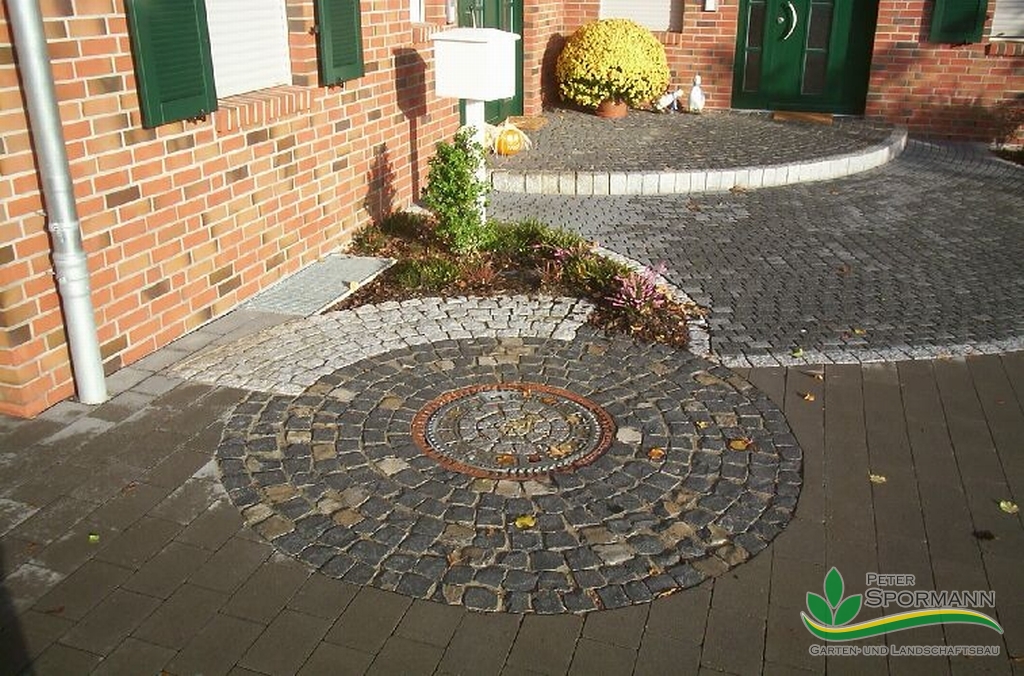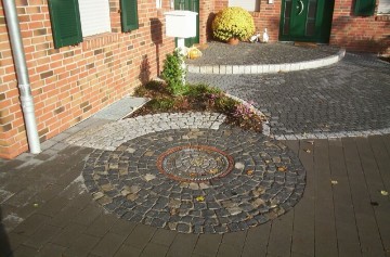 Sie befinden sich hier: Home » Bildergalerie » Bautechnik » Naturstein und Naturbaustoffe im Gartenbau » 19. Kombination aus Granit-, Basalt- und Betonpflaster