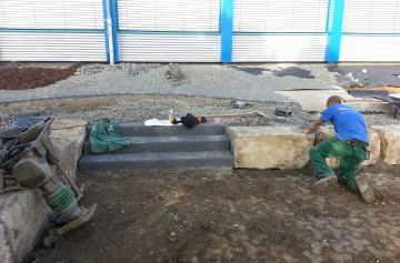 Sie befinden sich hier: Home » Bildergalerie » Bautechnik » Naturstein und Naturbaustoffe im Gartenbau » 27. Sitzmauer aus Muschelkalkquardern