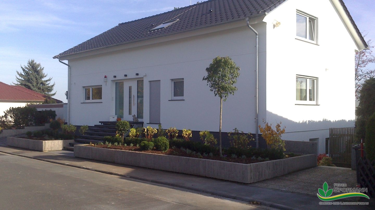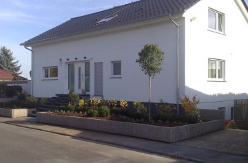 Sie befinden sich hier: Home » Bildergalerie » Bautechnik » Vorgarten » Neu gestalteter Vorgarten nach unseren Plänen. Hier direkt nach der Pflanzung