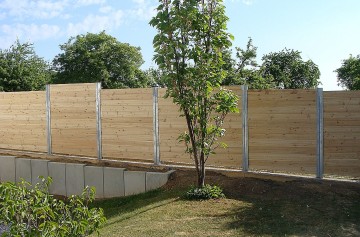 Sie befinden sich hier: Home » Bildergalerie » Bautechnik » Zäune, Sichtschutz und Einfriedung » Sichtschutzzaun aus verzinkten Stahlträgern und Holzbohlen
