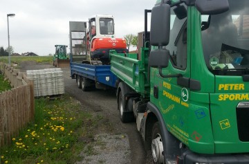 Home » Bildergalerie » Rund um die Firma Peter Spormann » Im Normalfall sind wir zumeist so anzutreffen. Hier wird gerade unser großer Bagger umgesetzt