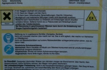 Home » Bildergalerie » Lohnende Schnappschüsse » Sicherheit wird groß geschrieben – Gefahrstoffverordnung für die gefährliche Flüssigkeit Äbbelwoi