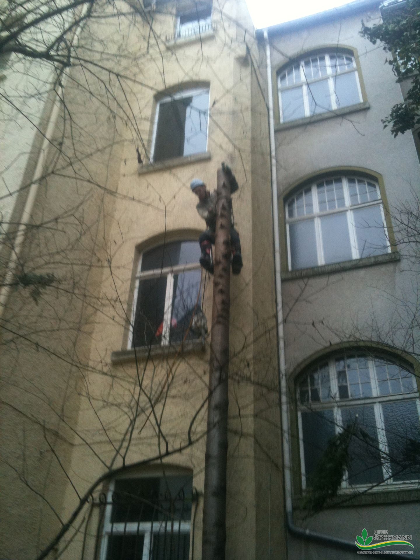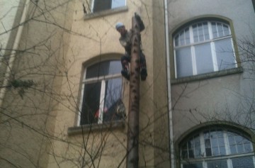 Sie befinden sich hier: Home » Bildergalerie » Vegetationstechnik » Baumpflege und Baumfällungen » Nach der Kaffepause geht es wieder in Richtung Boden