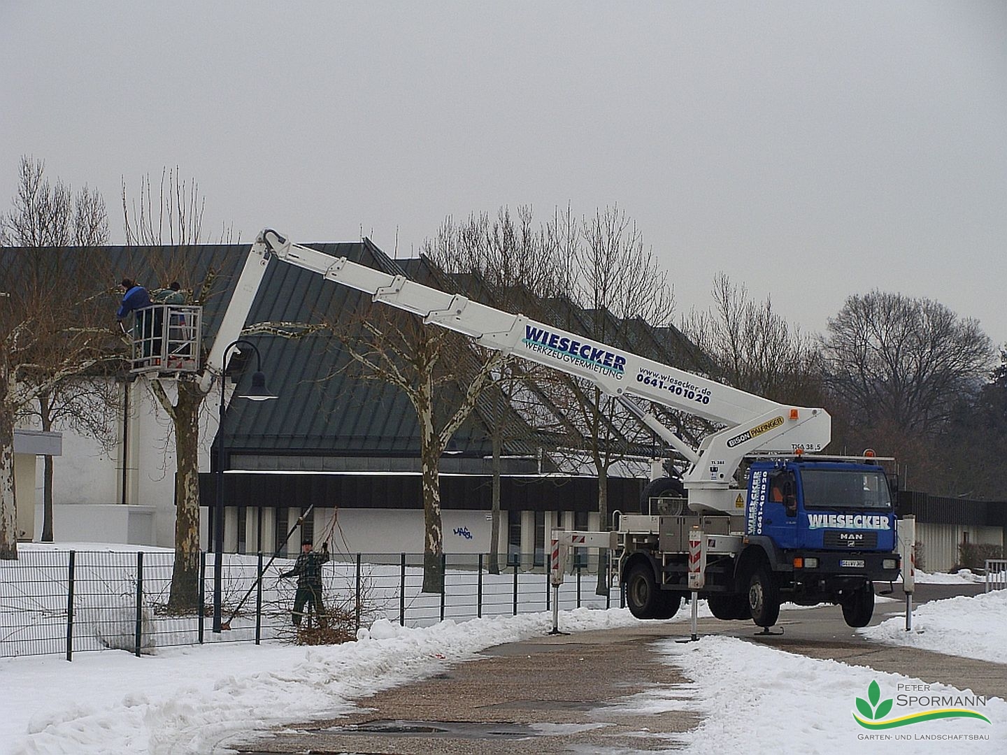 Home » Bildergalerie » Vegetationstechnik » Baumpflege und Baumfällungen » Baumpflege bei Schnee – Flurschäden bleiben aus, da der Frost den Böden schützt