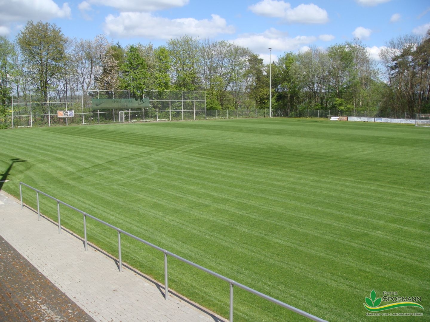 Blick auf den Sportplätz Rödgen mit dessen Fertigstellungspflege wir im Frühjahr 2014 beauftragt wurden