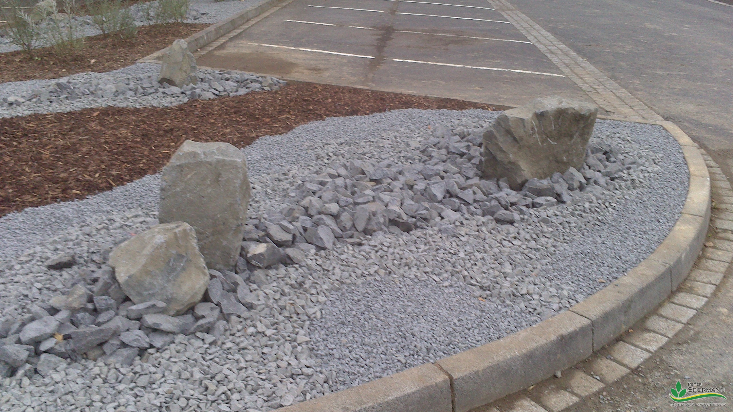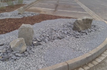 Home » Bildergalerie » Vegetationstechnik » Pflanzarbeiten » Bei der Gestaltung mit Steinmulch sollten immer mehrere Korngrößen gewähl werden um Abwechslung zu erzeugen