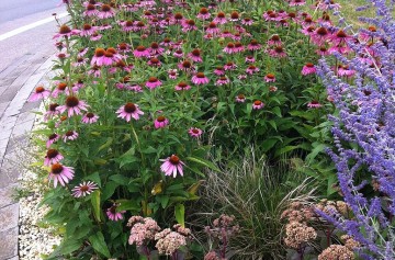 Sie befinden sich hier: Home » Bildergalerie » Vegetationstechnik » Pflanzenimpressionen » Blauraute, Fetthenne und Sonnenhut zeigen was sie können