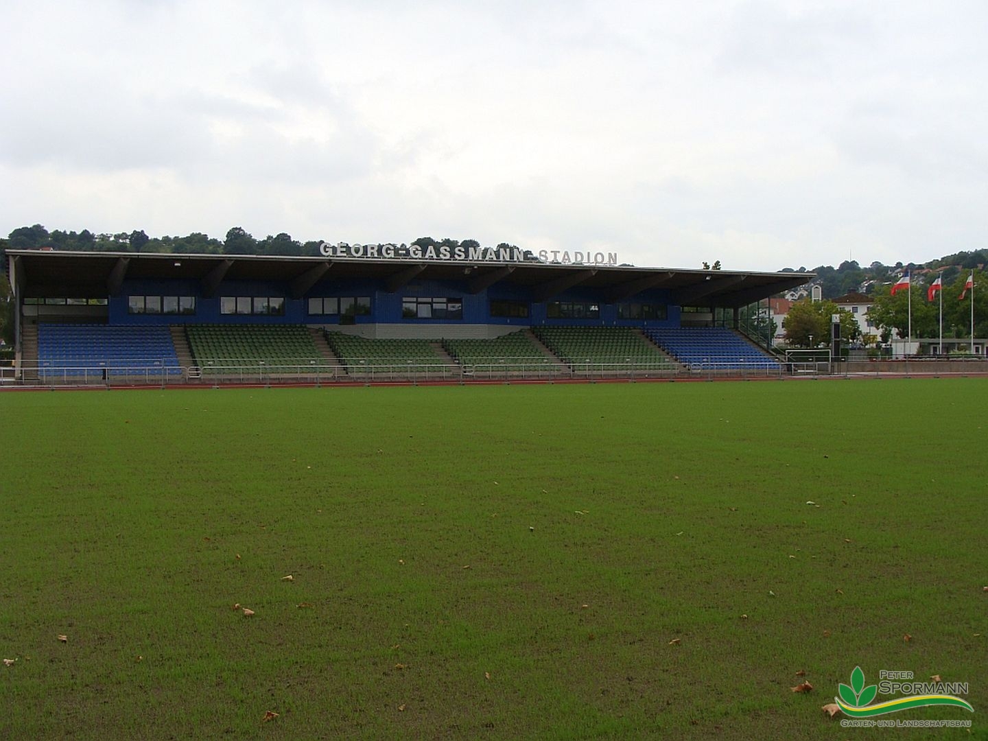 Home » Bildergalerie » Vegetationstechnik » Rasenarbeiten » Im Bild das Georg-Gassmann Stadion Marburg. Die Einsaat erfolgte vor etwa 18 Tagen. Das Damen Länderspiel ist sechs Wochen später terminiert!