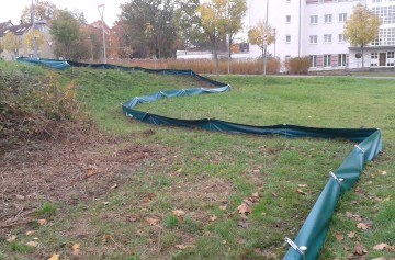 Home » Bildergalerie » Vegetationstechnik » Renaturierungen » Im Bild der Amphibienschutzzaun, welcher vor dem Erweiterungsbau eines Supermarktes durch uns aufgestellt wurde, um die Amphibien zu schützen