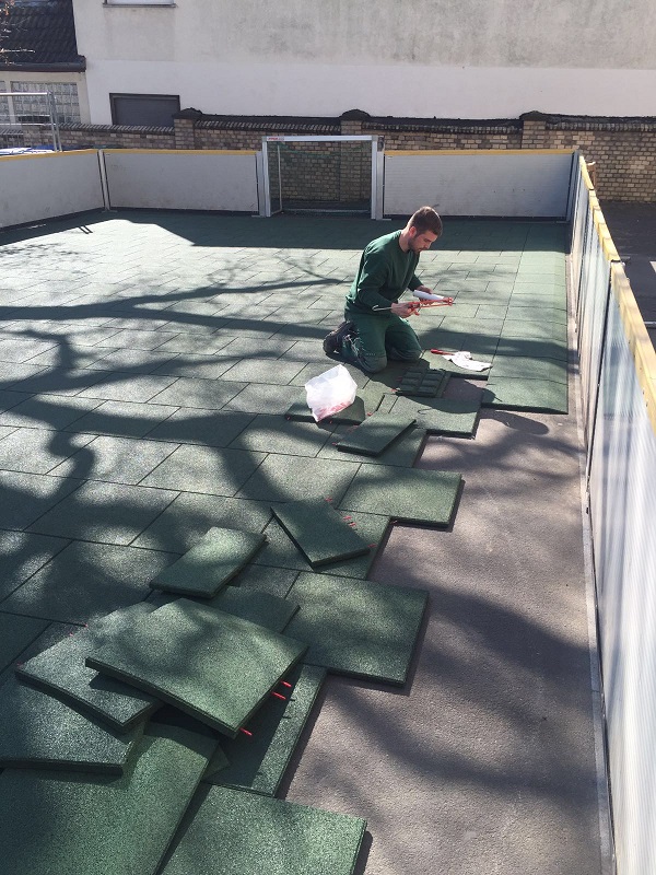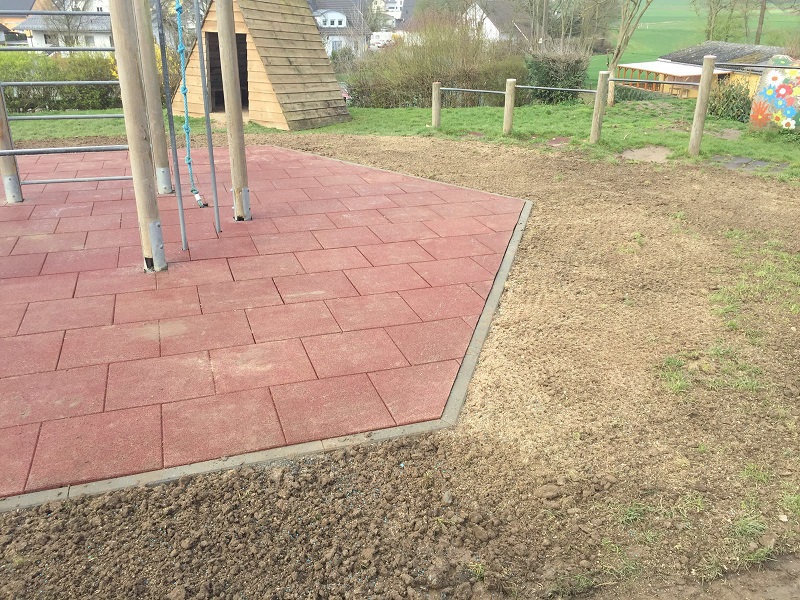 - Zwei Bilder unserer Arbeiten in den Osterferien an diversen Schule des Landkreises Gießen. Hier im speziellen die Verlegung von Fallschutzplatten für ein Soccerfeld in Obbornhofen sowie der Bau eines Fallschutzbereiches samt Einfassung für ein vorhandenes Spielgerät in Holzheim