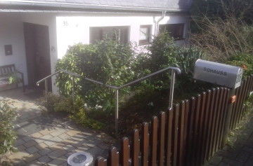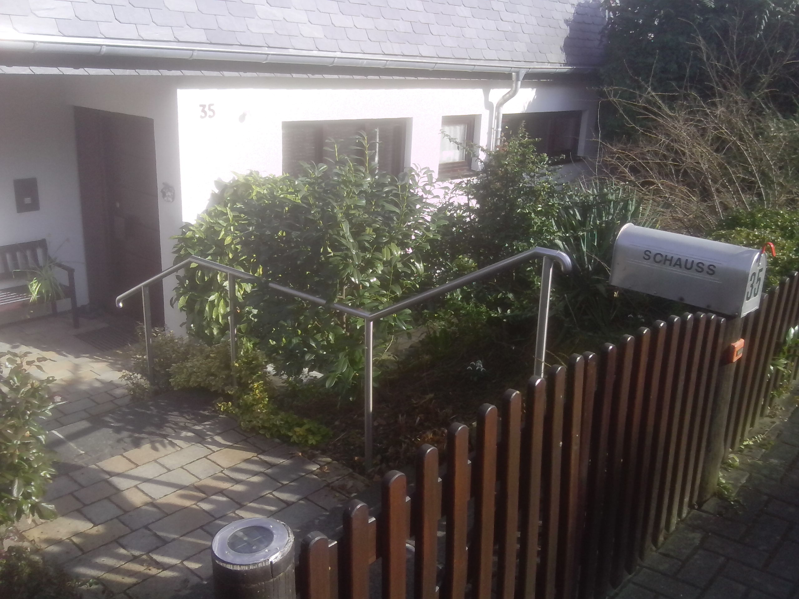 Sie befinden sich hier: Home » Der neue Hauszugang für Jung und Alt » Blick auf die vorhandene Treppenanlage sowie den eingewachsenen Vorgarten