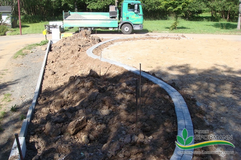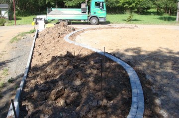 Sie befinden sich hier: Home » Neugestaltung eines Einfamilienhauses im Westerwald » Nach Abschluss der Belagsarbeiten wurde die Rasenkante gesetzt