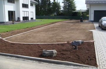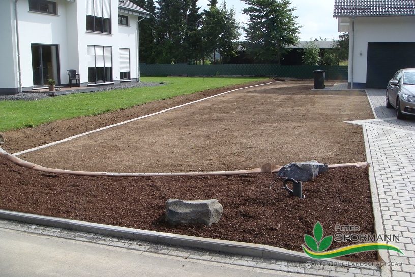 Auch die Raseneinsaat wurde dann vom Kunden nach unseren Vorgaben ausgeführt, ebenso wie die Pflege nach unseren Pflegevorgaben