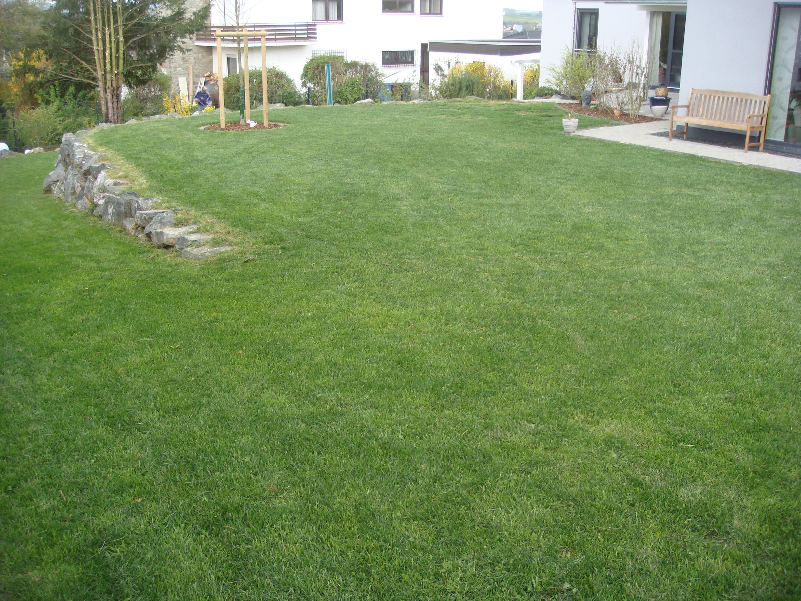 Bild vom März 2014. Der Rasen ist noch kein Jahr alt, aber durch die gute Pflege absolut dicht und ohne Unkräuter