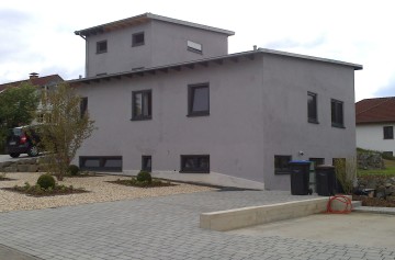 Sie befinden sich hier: Home » Neubau mit Aussicht » Der frisch bepflanzte Vorgarten in hellem Kies